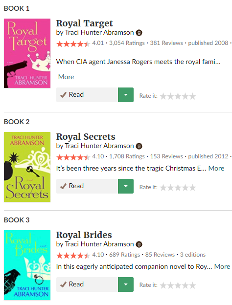Like all of Traci Hunter Abramson’s books, I read this series out of order. I started with “Royal Heir” (book 4), then read books 1, 2, then 3.