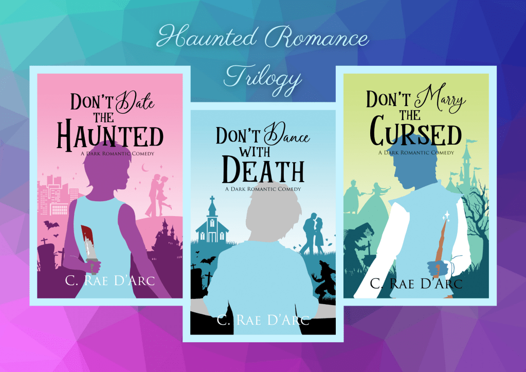 As the finale of my Haunted Romance trilogy, the cover of “Don’t Dance with Death” went through the fewest iterations. It largely depended on the first and second books to make it a clear trilogy for the average scroller who’s judging my books based on their covers.